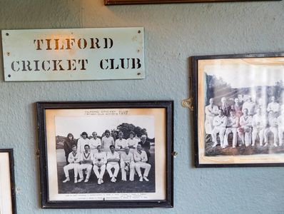 Cricket is played every Saturday and Sunday afternoon from April to September and photographs of the Tilford Cricket Club in years past can be seen adorning the walls of the pub, as can the famous l’Anson Cup which was won by the Club three years in succession – in 1908, 1909, and 1910 – to win outright. The Barley Mow is the clubhouse of the Tilford Cricket Club.