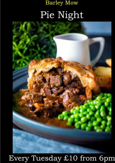 Join us every Tuesday for our special pie night. There will be a choice of three pies (one vegetarian) served with a choice of mash or chips, roasted root vegetables, peas and thick gravy. All for just £10. We would highly recommend booking to avoid disappointment: 01252 792205. This weeks pies are: (will be announced on the Monday before).